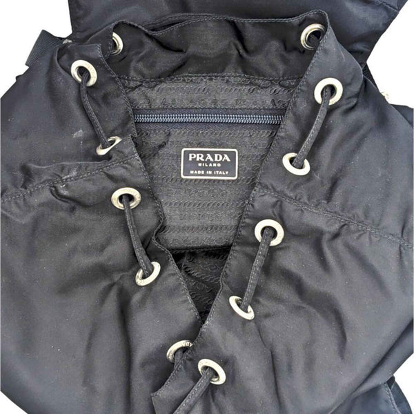 PRADA Prada nylon backpack, black, with triangular plate, for men and women.