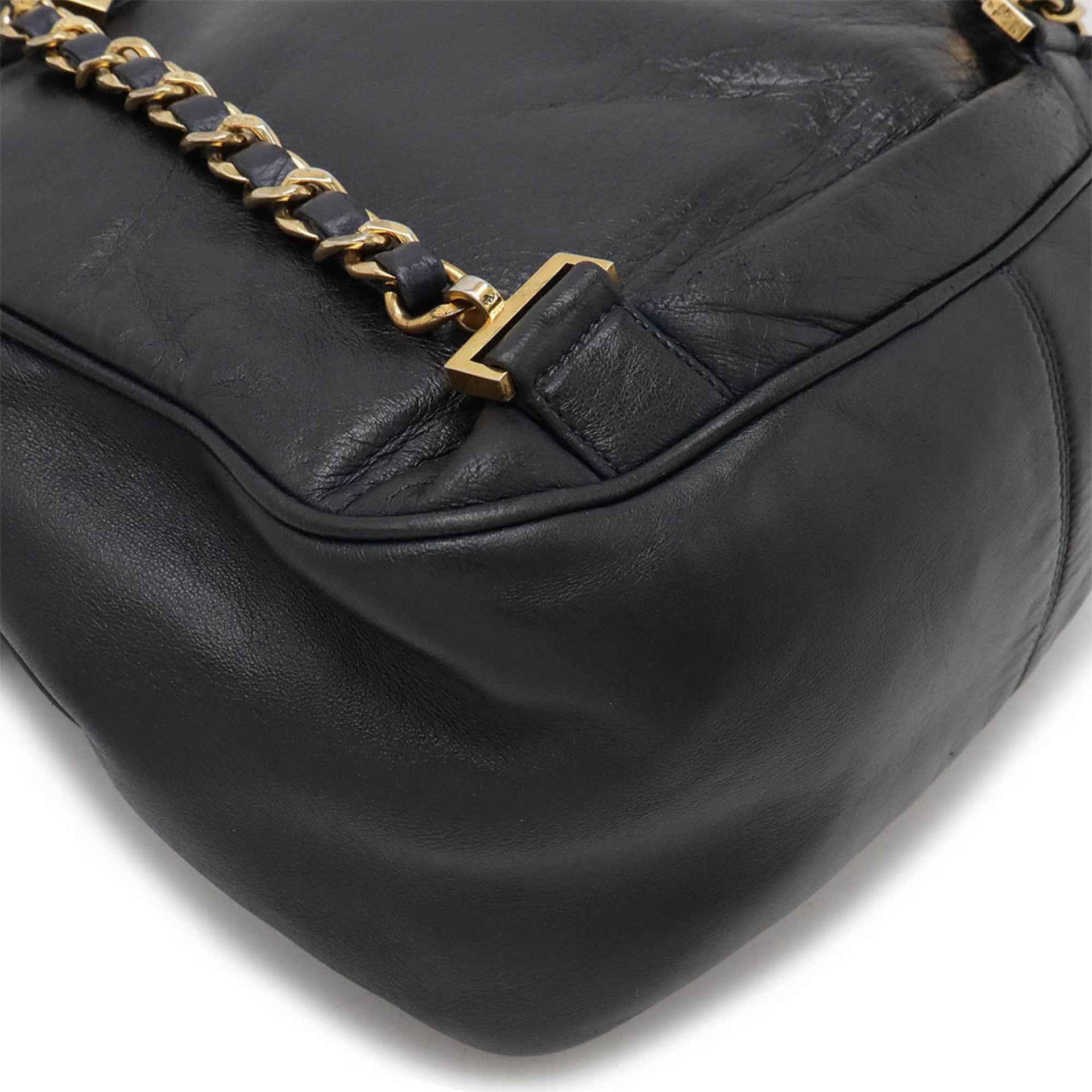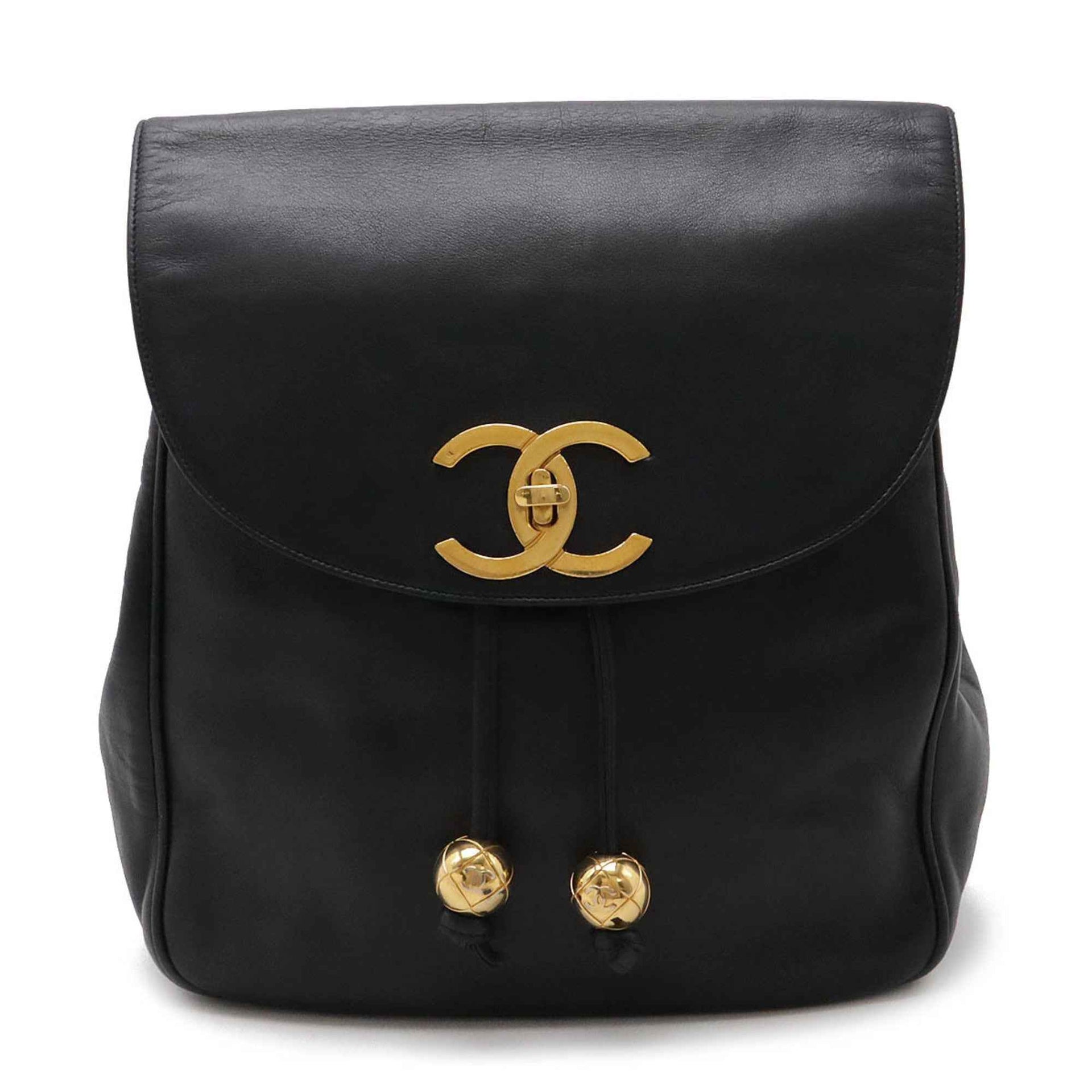 CHANEL Coco Mark Chain Shoulder Backpack Rucksack Leather Black Navy