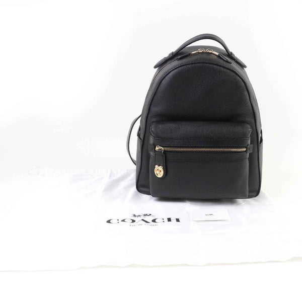 COACH 35608 Turnlock Polished Pebble Leather Backpack/Daypack in Black, Women\'s, with Dust Bag