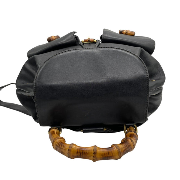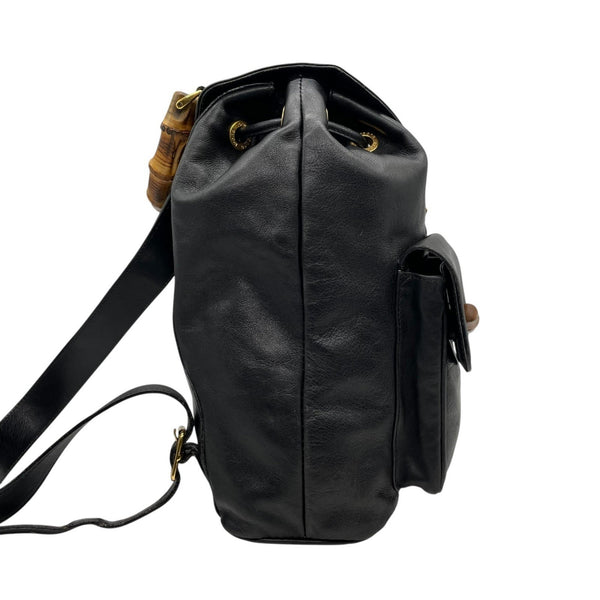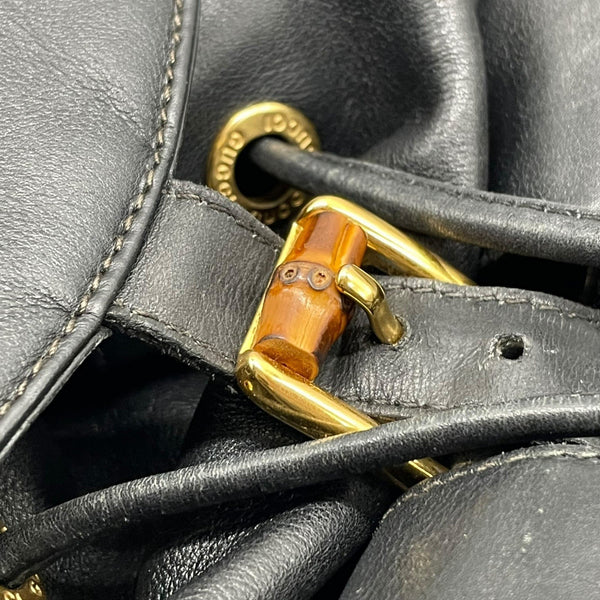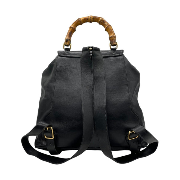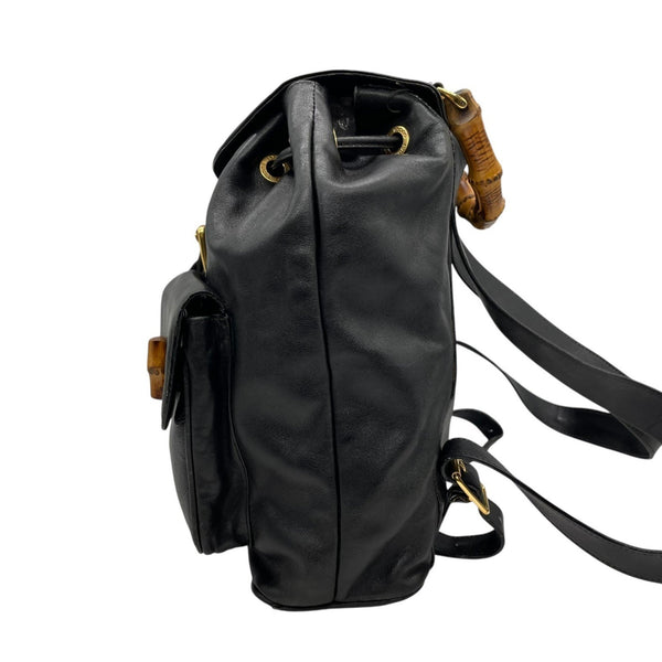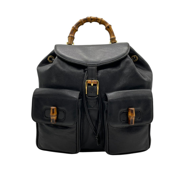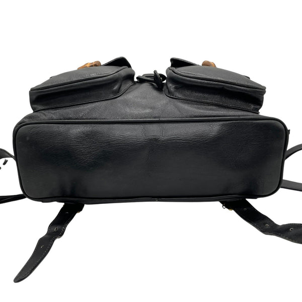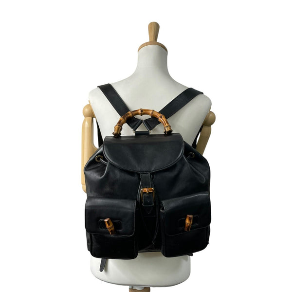 GUCCI Bamboo Backpack, Black Leather, Double Pockets, Gold Hardware, Women's, Old Gucci C7