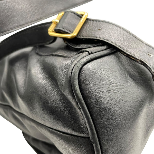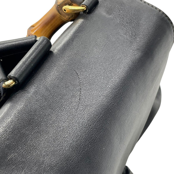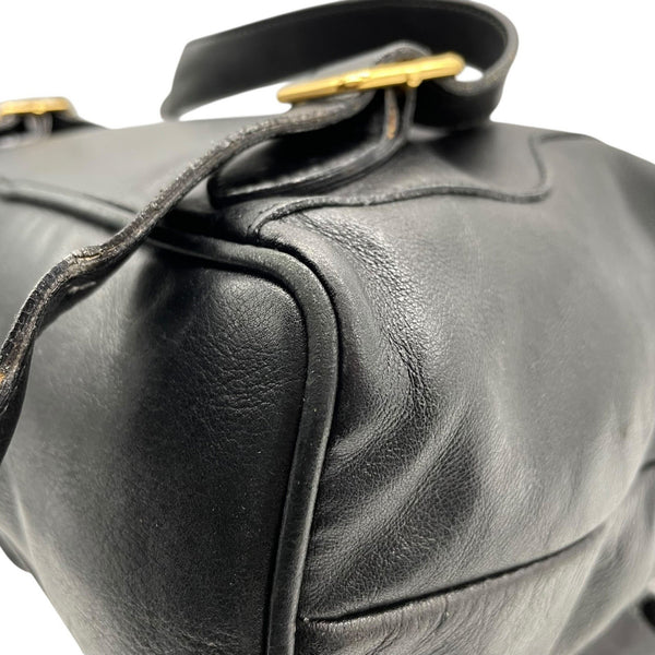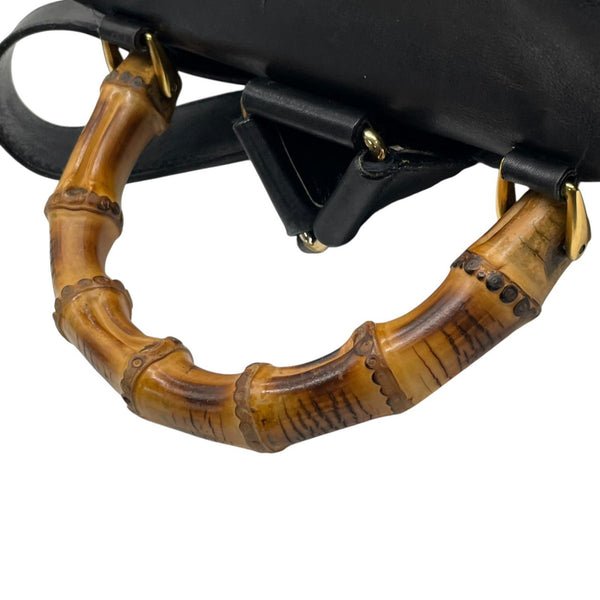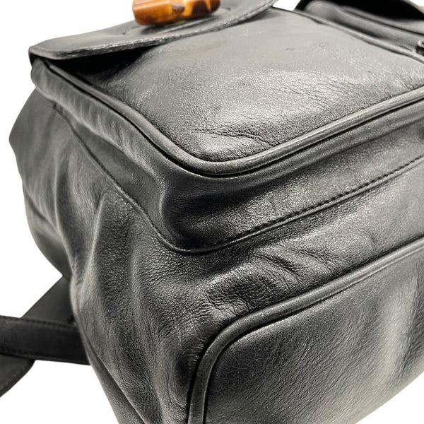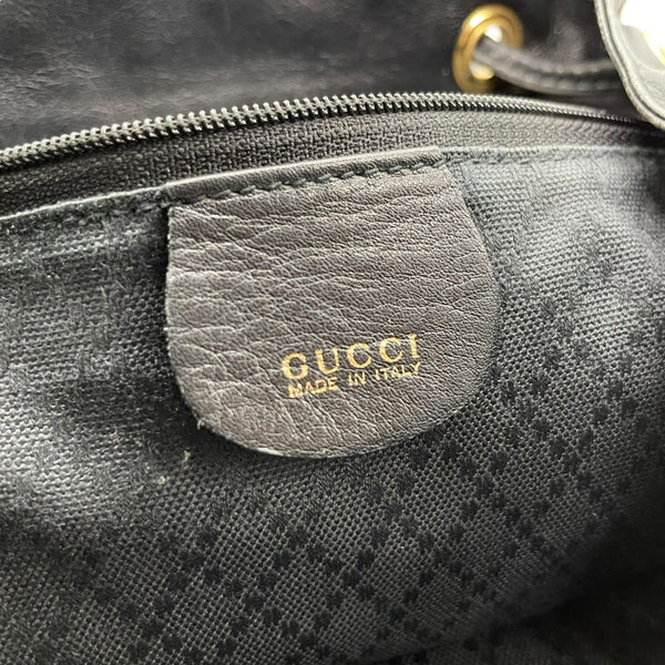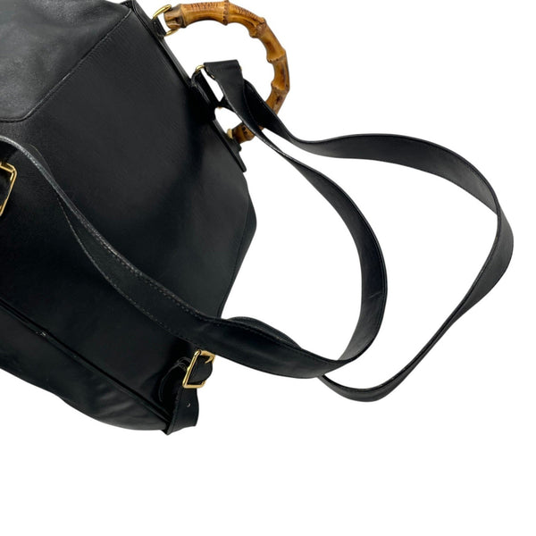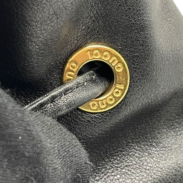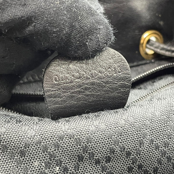 GUCCI Bamboo Backpack, Black Leather, Double Pockets, Gold Hardware, Women's, Old Gucci C7
