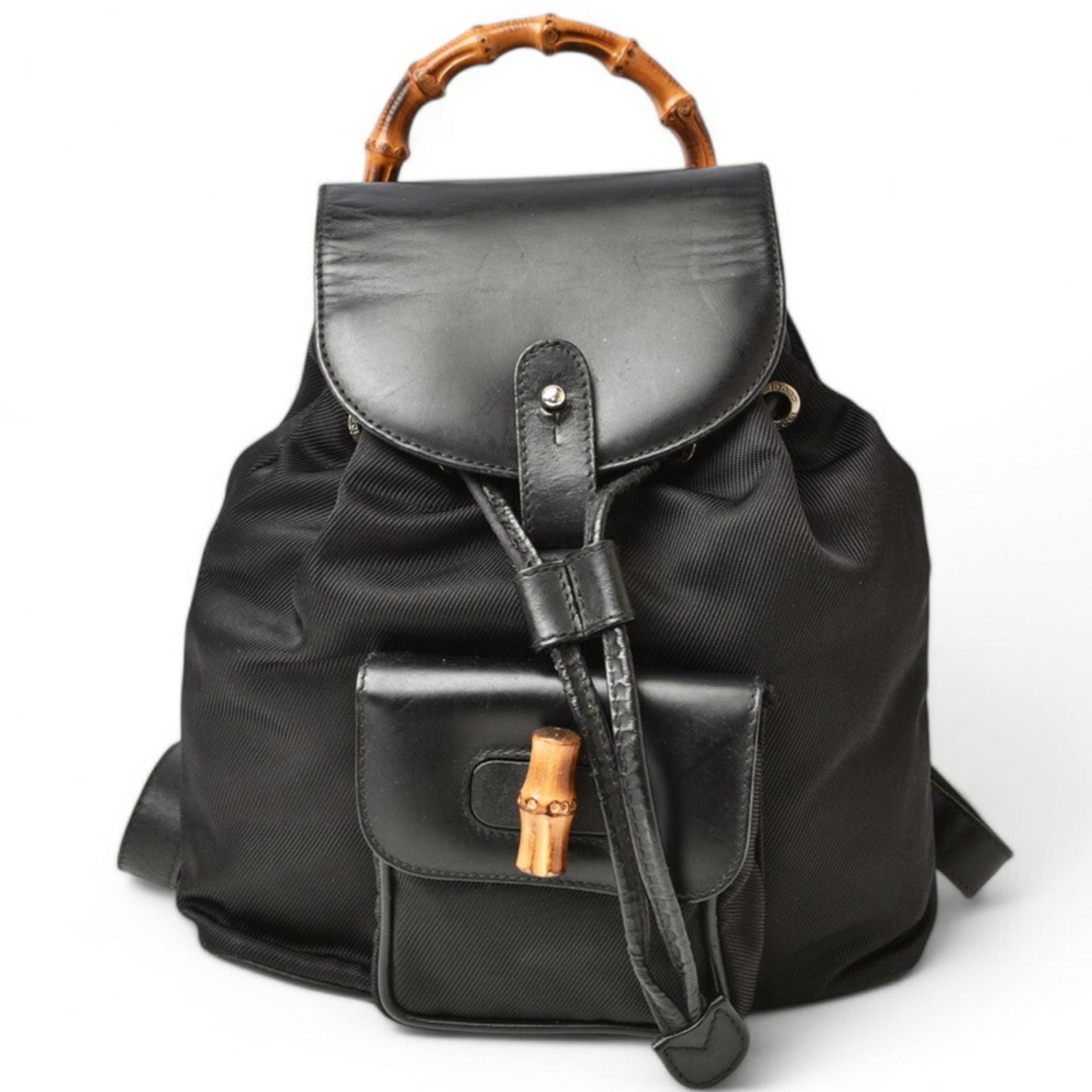 GUCCI Bamboo Backpack Canvas Leather Black