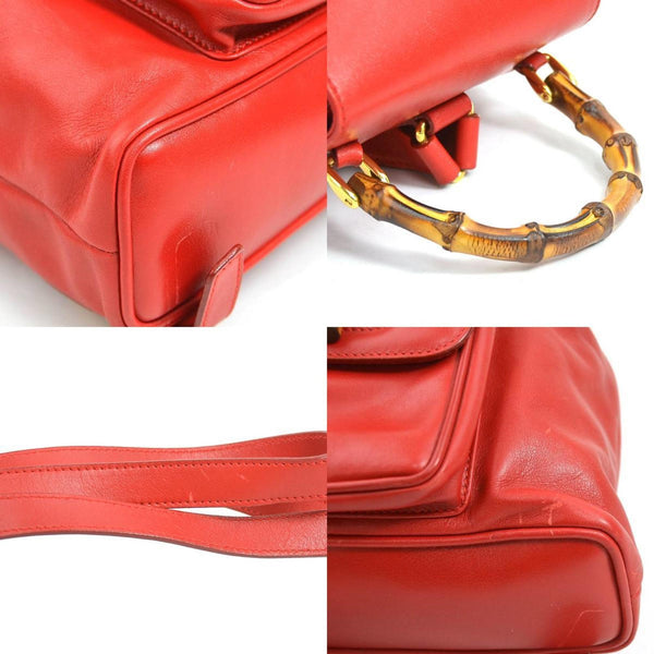 Gucci Bamboo Leather Backpack in Red and Gold for Women (W1264G)