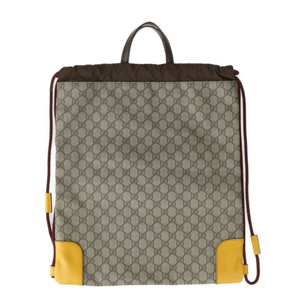 GUCCI GG Supreme Angry Cat Drawstring Backpack (473872) in Beige, Yellow, and Brown Leather with a Head, Cat, Tiger Design (R2422123008088)
