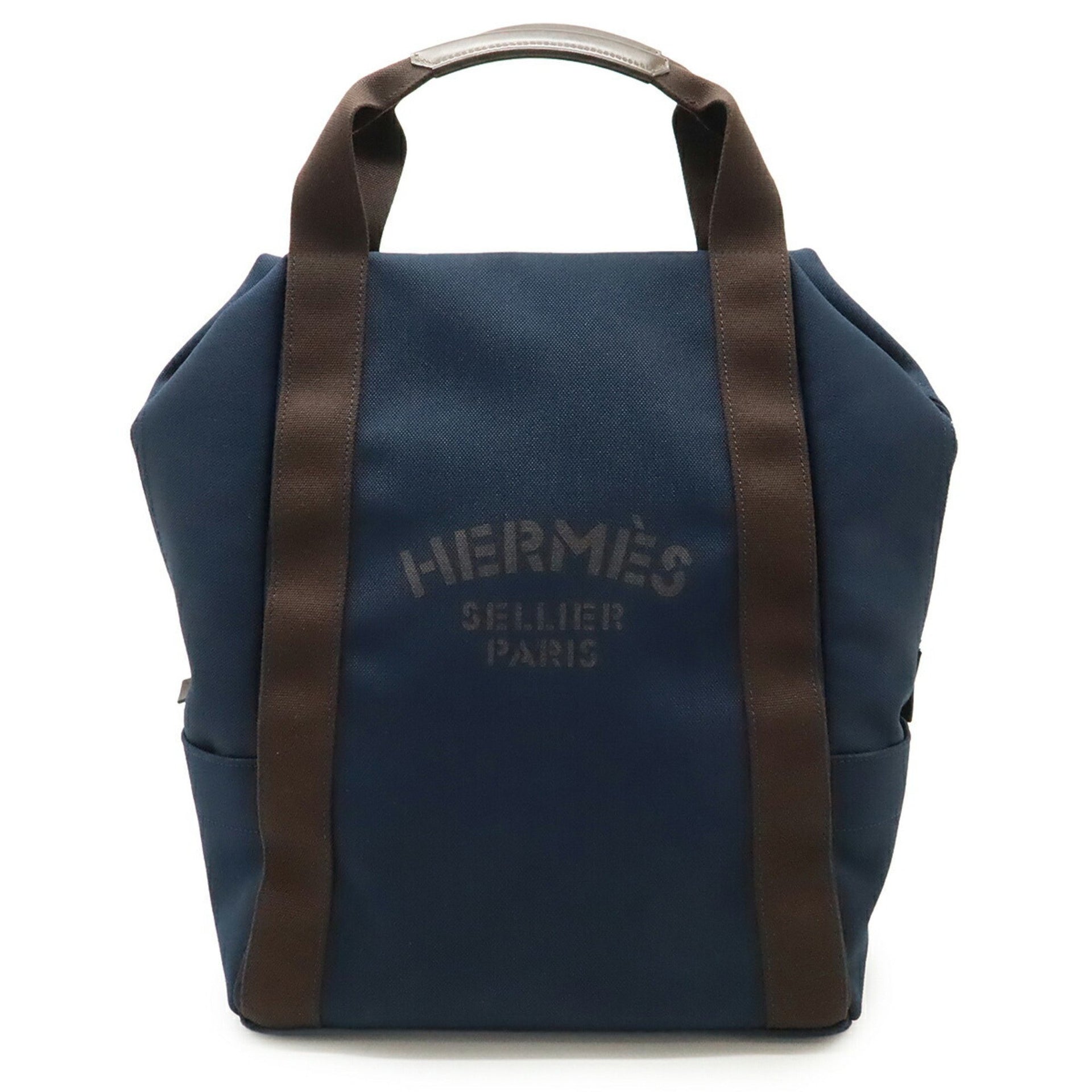 HERMES Groom Sac de Pansage Backpack, Canvas and Leather, Navy Blue Dark Brown, H800642EK