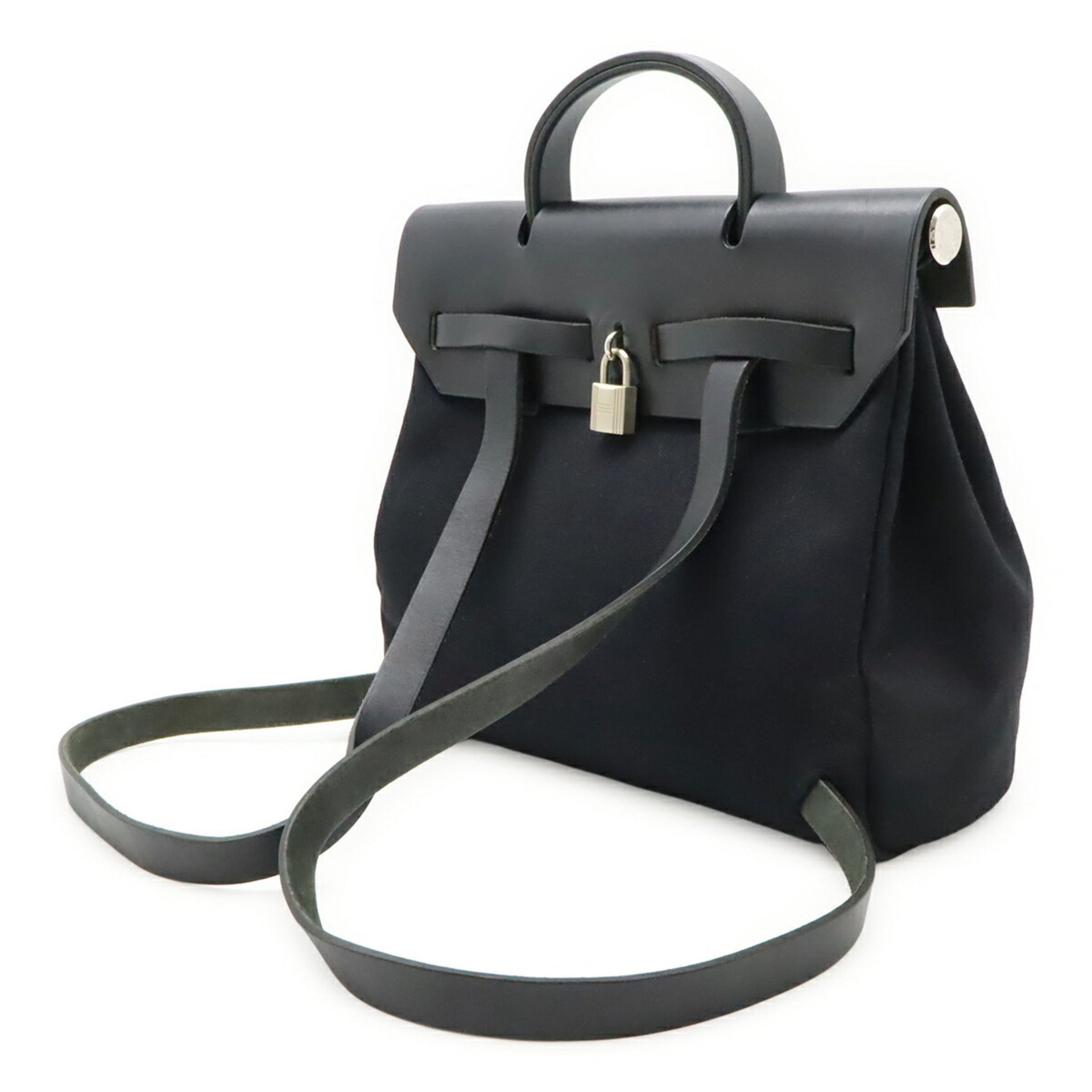 HERMES Hermès Airbag Ad PM Backpack/Handbag Toile Officier Leather Black □D Stamp