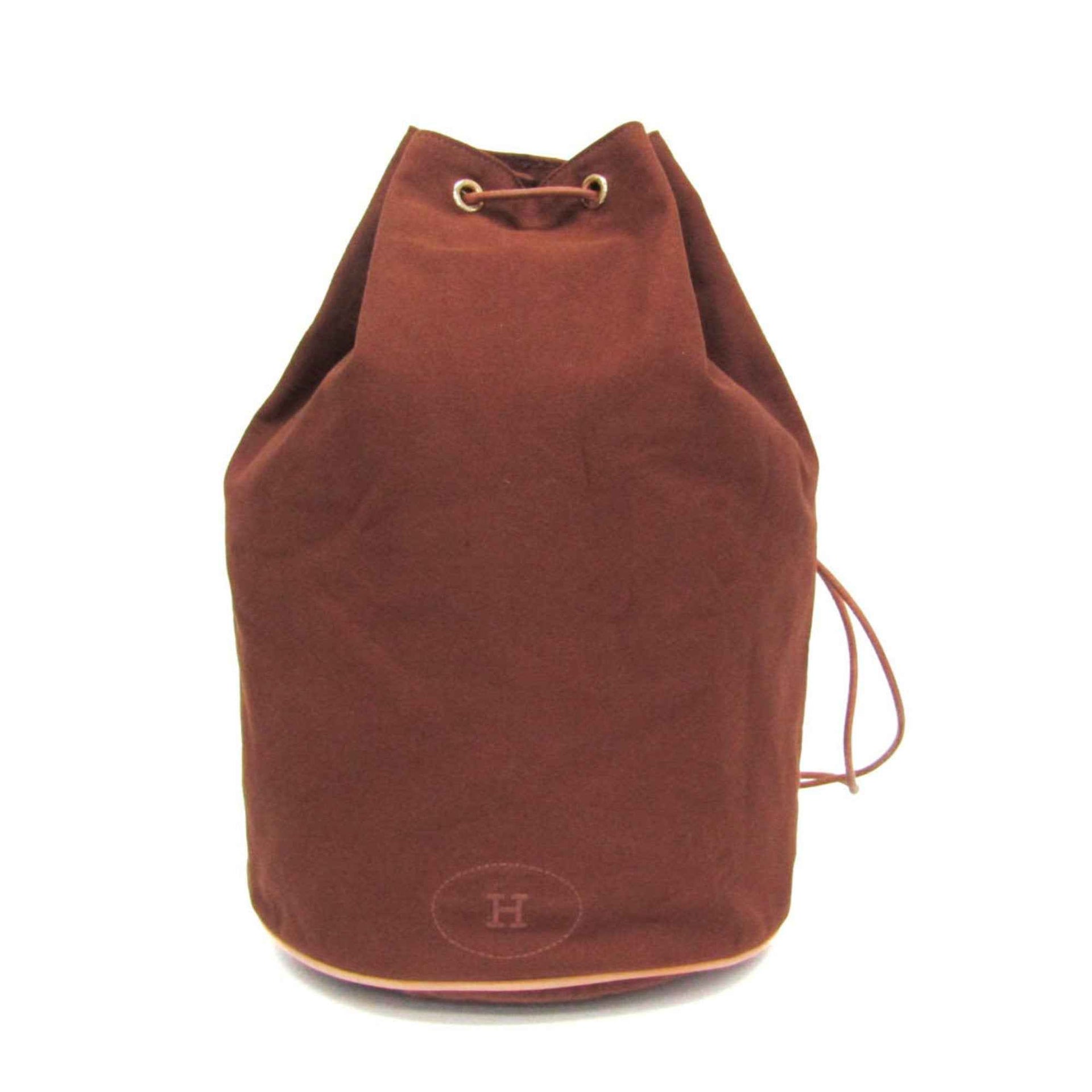 Hermes Polochon Mimil GM Women\'s Cotton,Leather Backpack,Shoulder Bag Brown