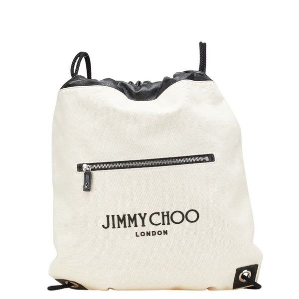Jimmy Choo Backpack/Knapsack in Beige and Black Canvas with Leather, Women\'s