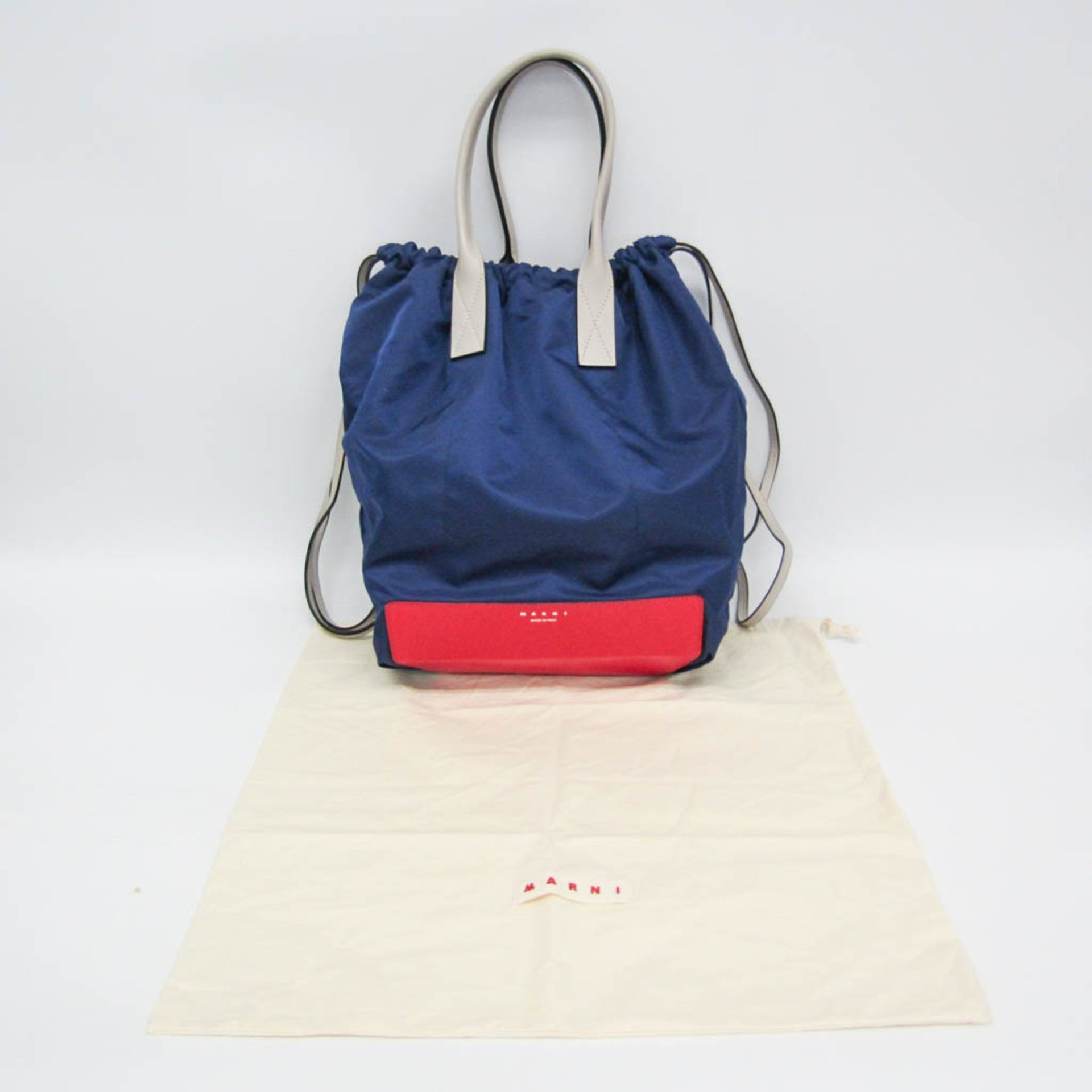 Marni Drawstring Bag ZAMP0005Q0 TN685 Men,Women Nylon,Leather Backpack,Tote Bag Navy,Off-white,Red Color