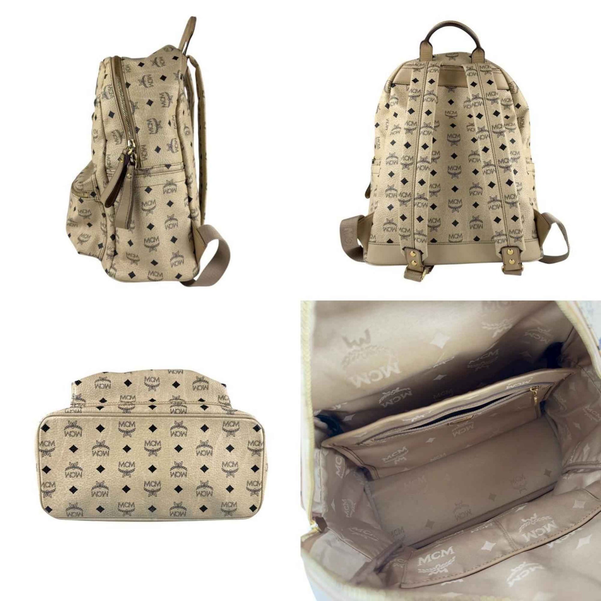 MCM Backpack, Leather, Beige, Men\'s/Women\'s, Z7539