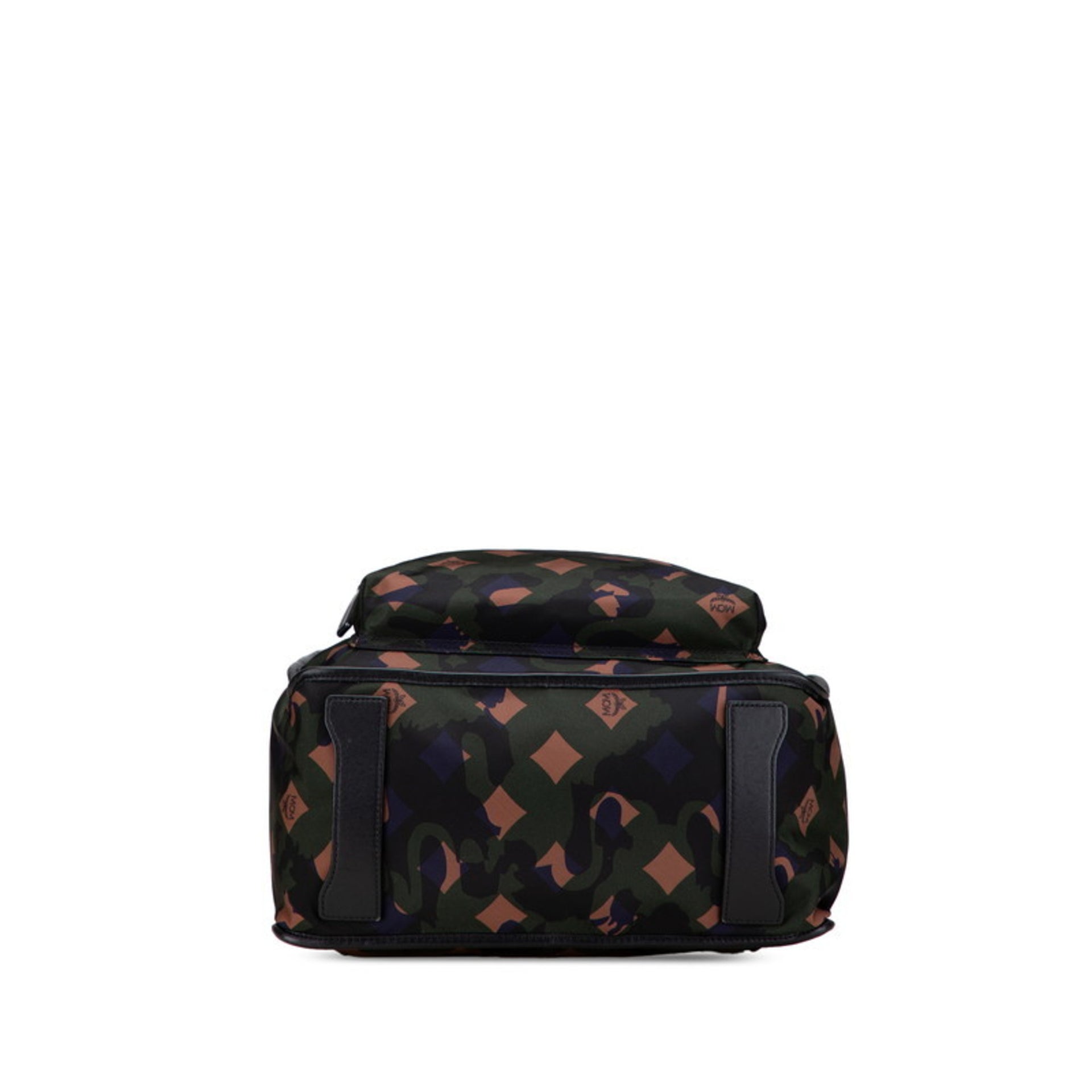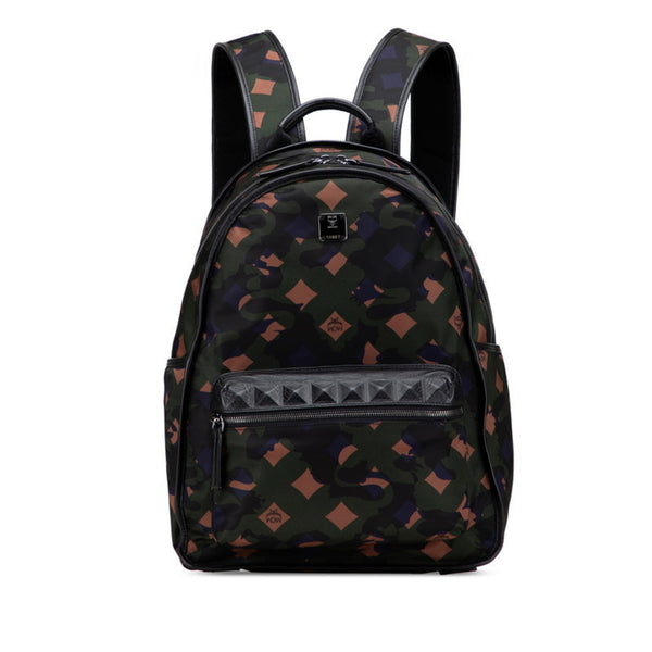 MCM Camouflage Backpack in Khaki Green, Black, Nylon, and Leather for Women