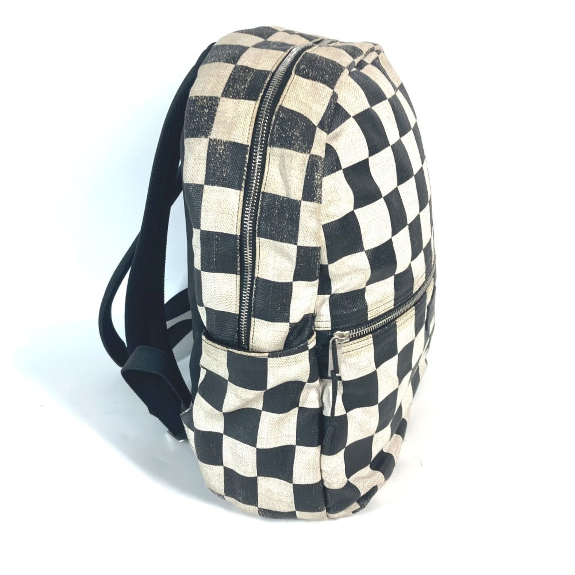SAINT LAURENT Saint Laurent Paris 609109 Checkered Backpack Leather Coated Canvas Men\'s Beige