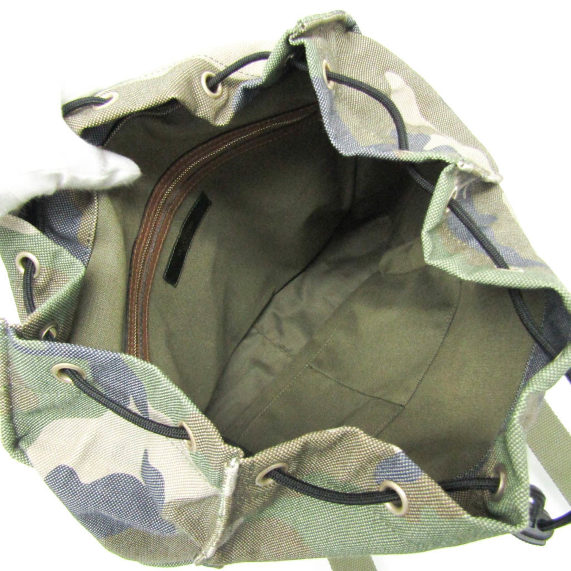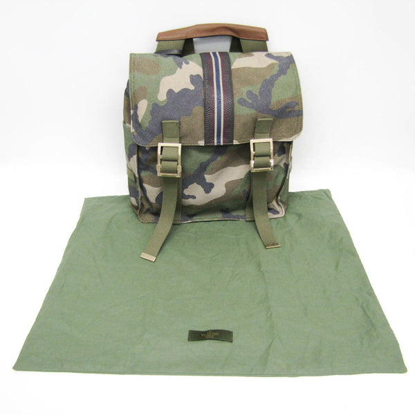 Valentino Garavani Military Women,Men Leather,Canvas Backpack Khaki