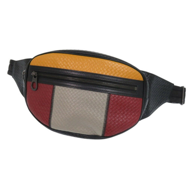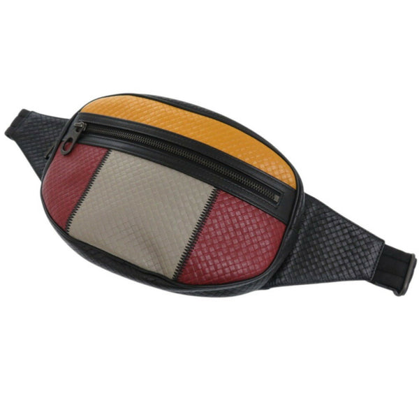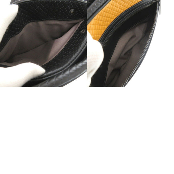 Bottega Veneta Micro Intrecciato Leather Body Bag in Black and Yellow. 1313BOTTEGAVENETA