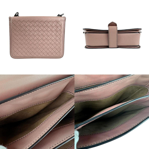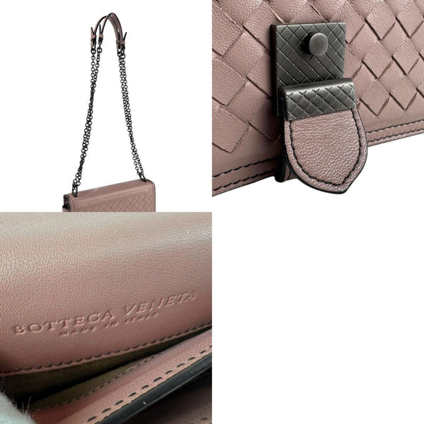 Bottega Veneta Shoulder Bag Intrecciato Leather Metal Pink Brown Women's z5831