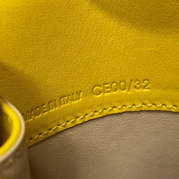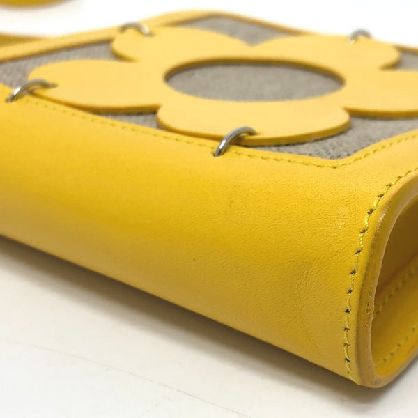 CELINE Flower Pochette Shoulder Bag Leather Canvas Women's Yellow Beige