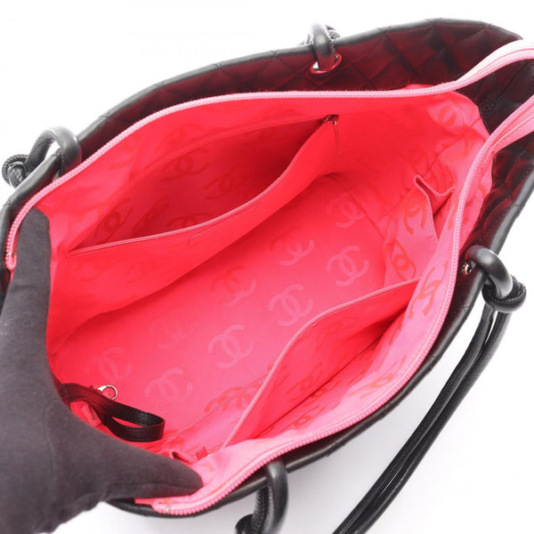 CHANEL Cambon Line Large Tote Bag, Lambskin Leather, Women\'s, Black