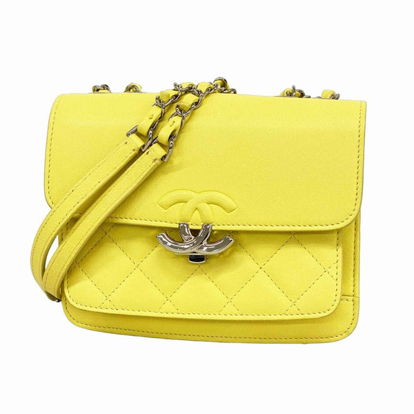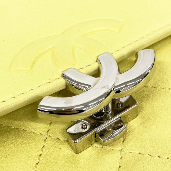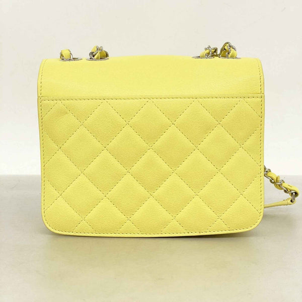 Chanel Shoulder Bag Matelasse W Chain Half Coco Leather Yellow Women\'s P1449452