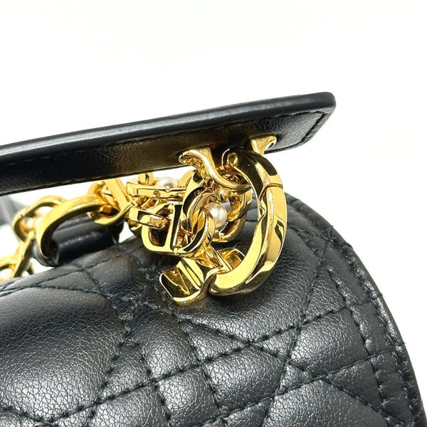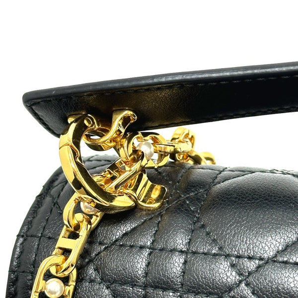 Christian Dior Dior M9271UBHI Cannage Jolie Top Handle Small 2WAY Bag Shoulder Crossbody Lambskin Women's Black