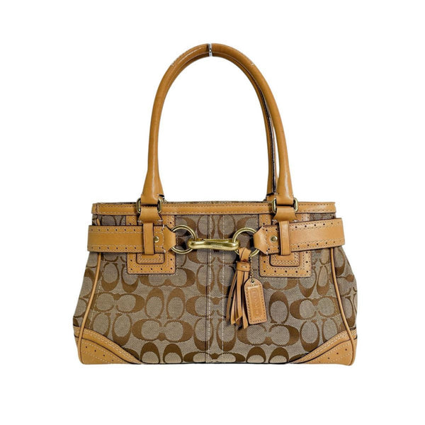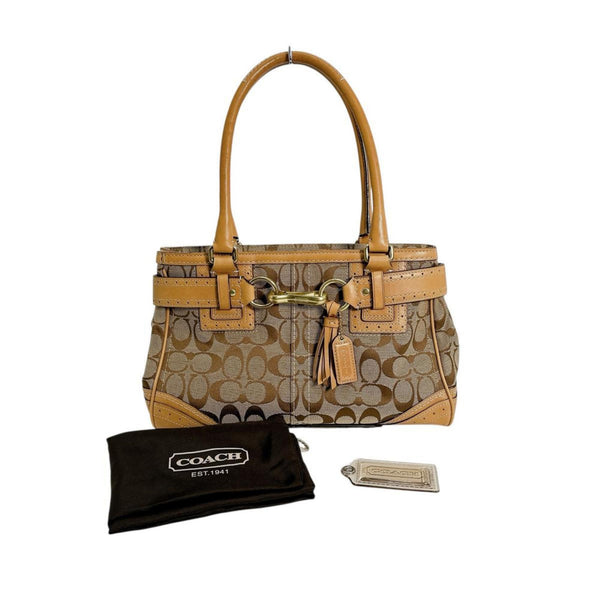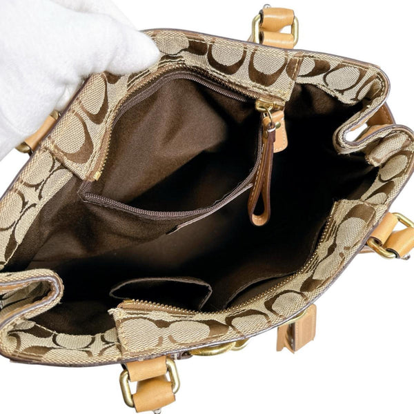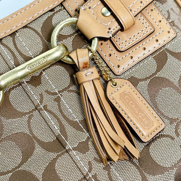 COACH Handbag Carryall Hamptons Signature Canvas G1073-F10507 Khaki x Brown