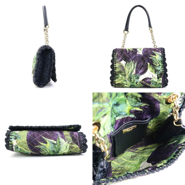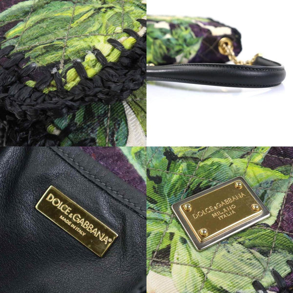 Dolce & Gabbana Shoulder Bag Canvas Raffia Purple Green Black Gold Women's e60551g