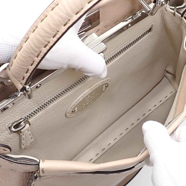 Fendi Peekaboo Iconic Medium Handbag, Women\'s, Beige Leather, 8BN290, Selleria