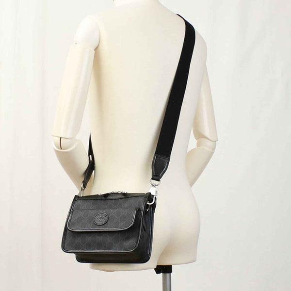 GUCCI Interlocking G Shoulder Bag GU88320 674164 Men\'s Black