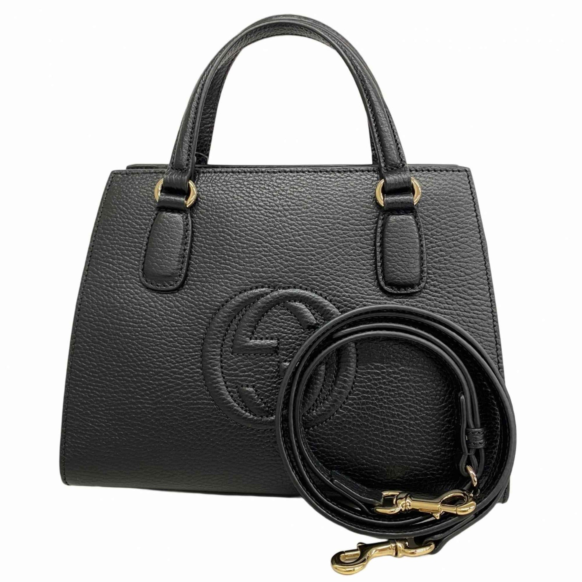 Gucci Soho Handbag 607722 Leather Black 2-Way Bag for Women