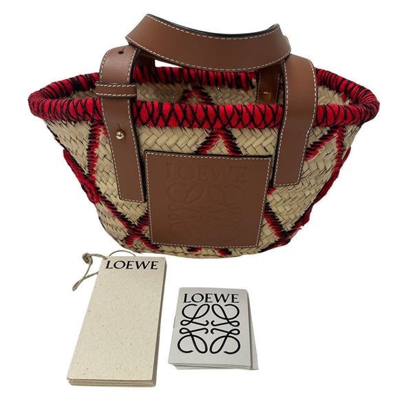 LOEWE Women's Straw Leather Basket Bag, William de Morgan, Red