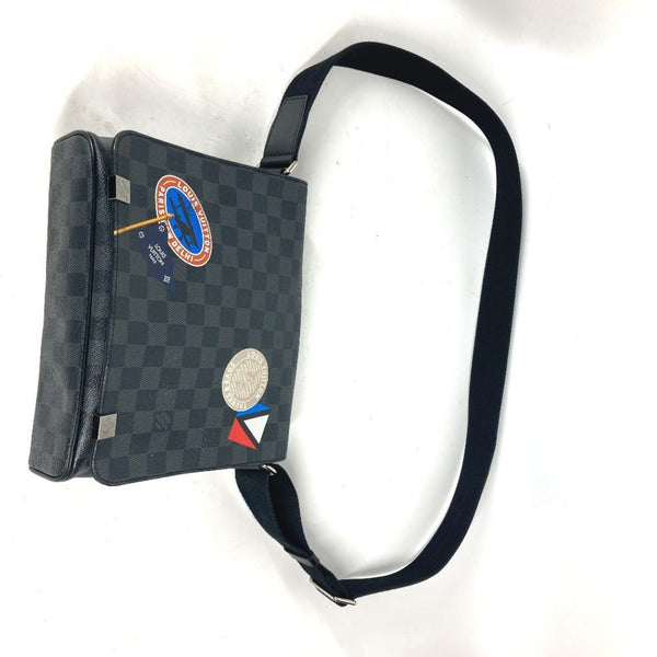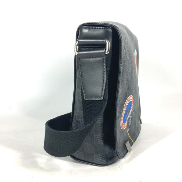 LOUIS VUITTON N41054 Damier Graphite Stickers District PM Bag Crossbody Flap Shoulder Canvas Men's Women's Black
