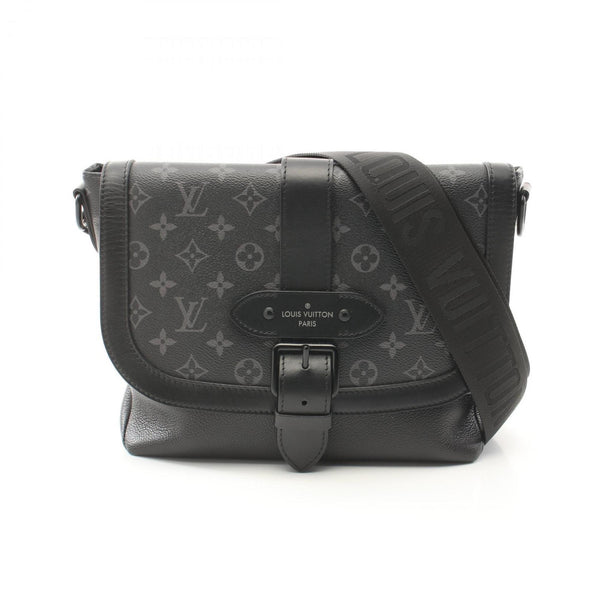 Louis Vuitton Saumur Messenger Shoulder Bag in Coated Canvas and Leather, Monogram Eclipse, Men's, Black, M45911