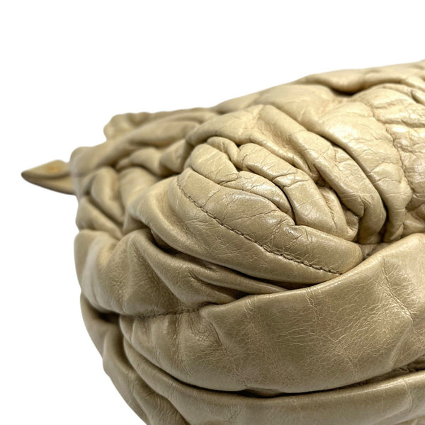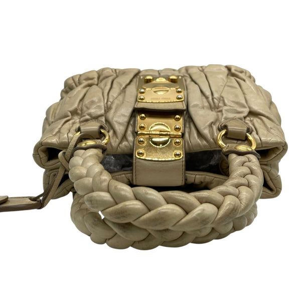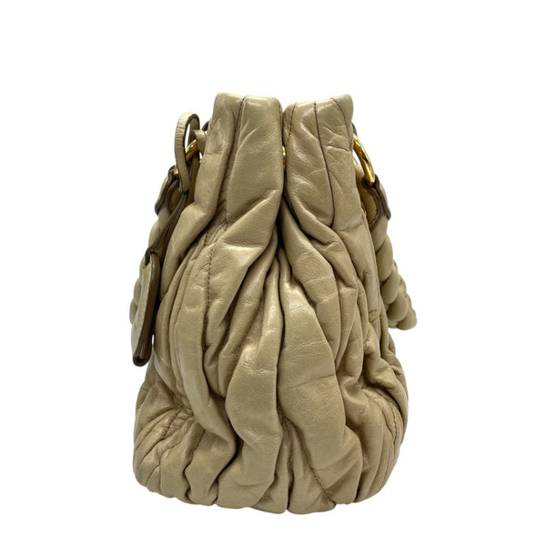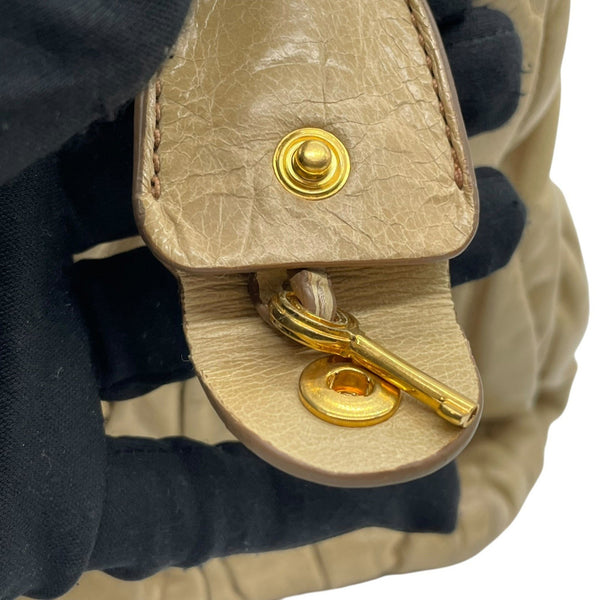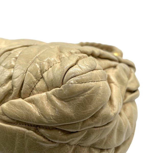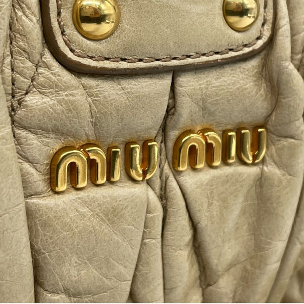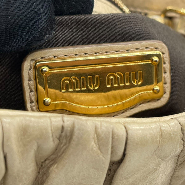 miumiu Miu Matelasse 2WAY Handbag Shoulder Bag Leather Genuine Khaki Beige Gold Hardware Logo Women's Crossbody