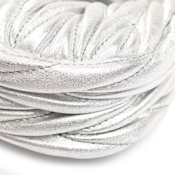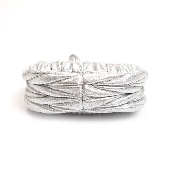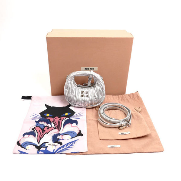 MIUMIU Miu Wonder Matelasse Leather Hobo Bag Pouch Silver 5NR019 Shoulder Charm Women's