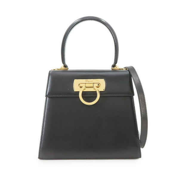 Salvatore Ferragamo Gancini 2way Hand Shoulder Bag Leather Black BX212193