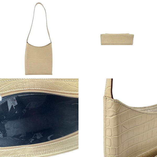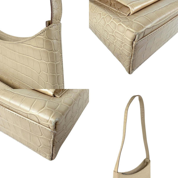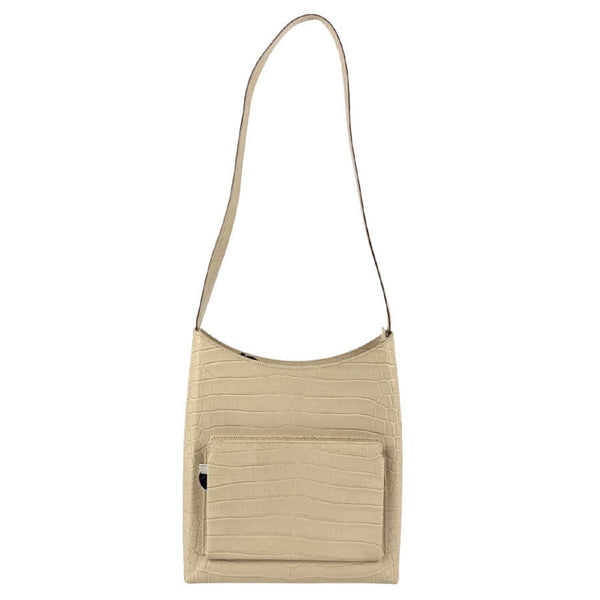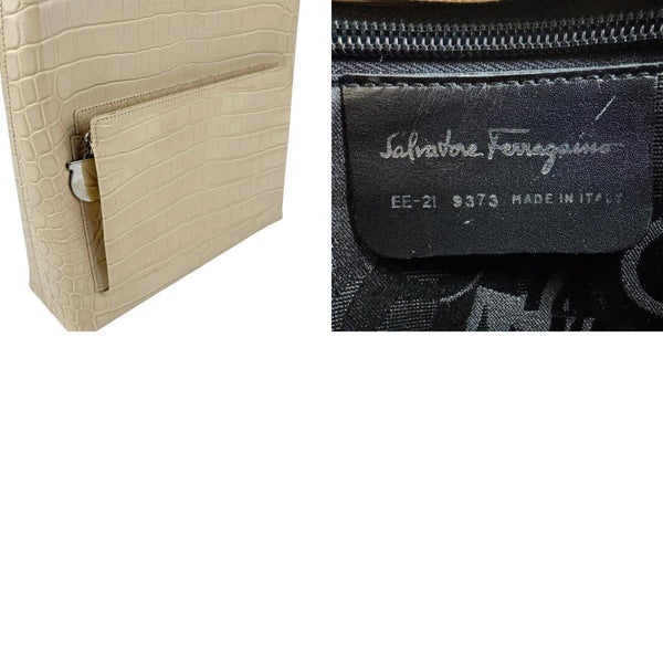 Salvatore Ferragamo Gancini Shoulder Bag in Embossed Leather, Beige and Silver, Women's, Z6087