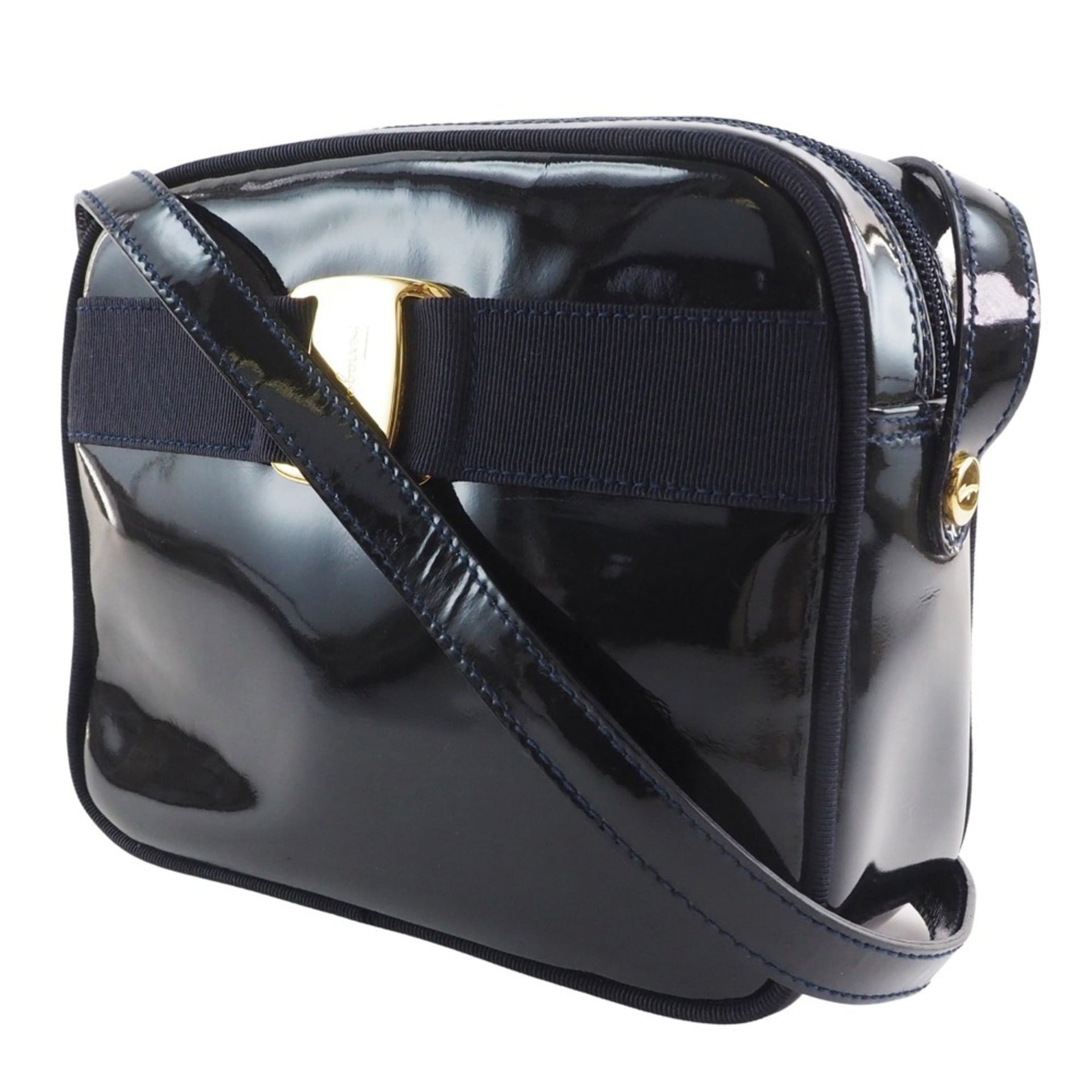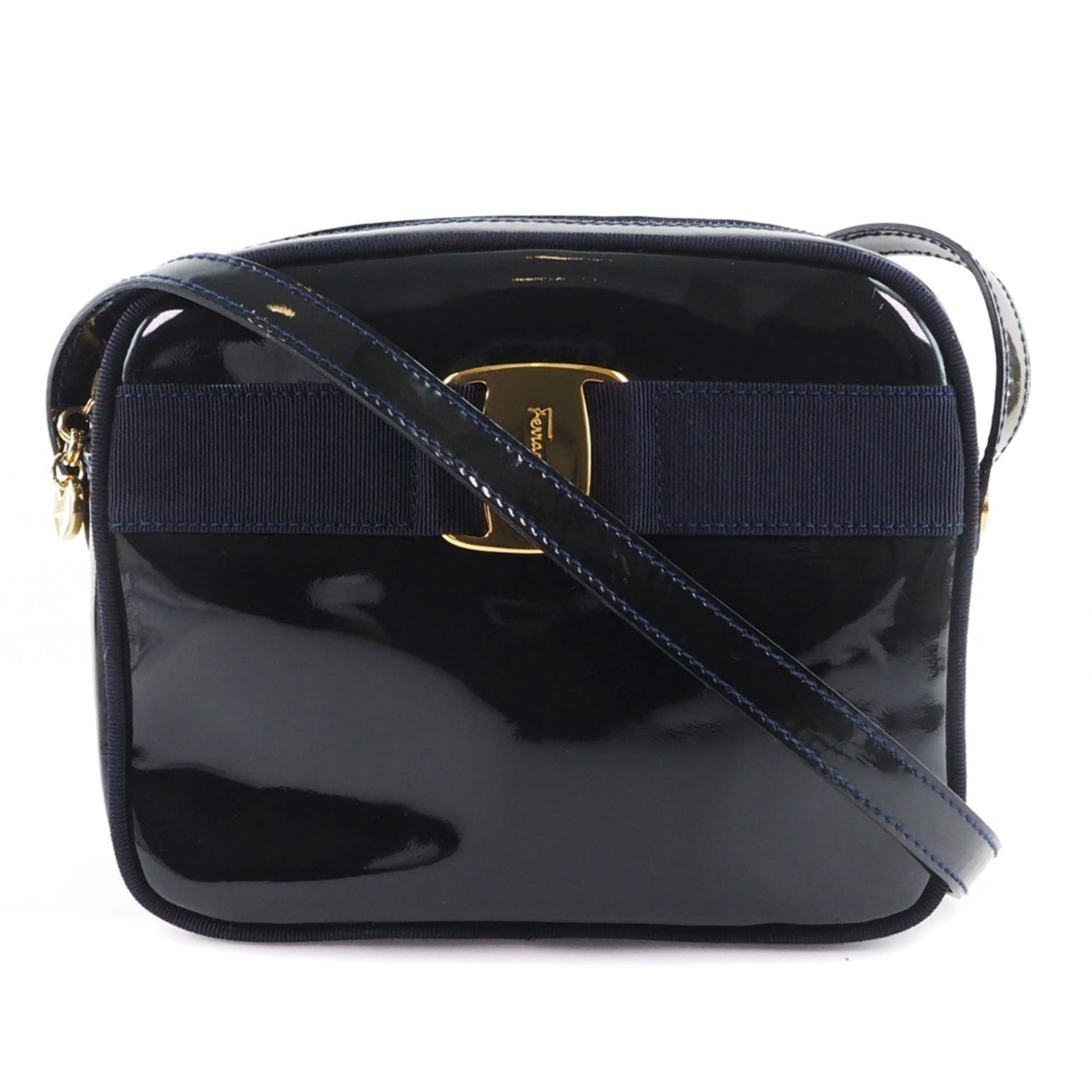 Salvatore Ferragamo Vara DE-21 3096 Patent Leather Black Women\'s Shoulder Bag