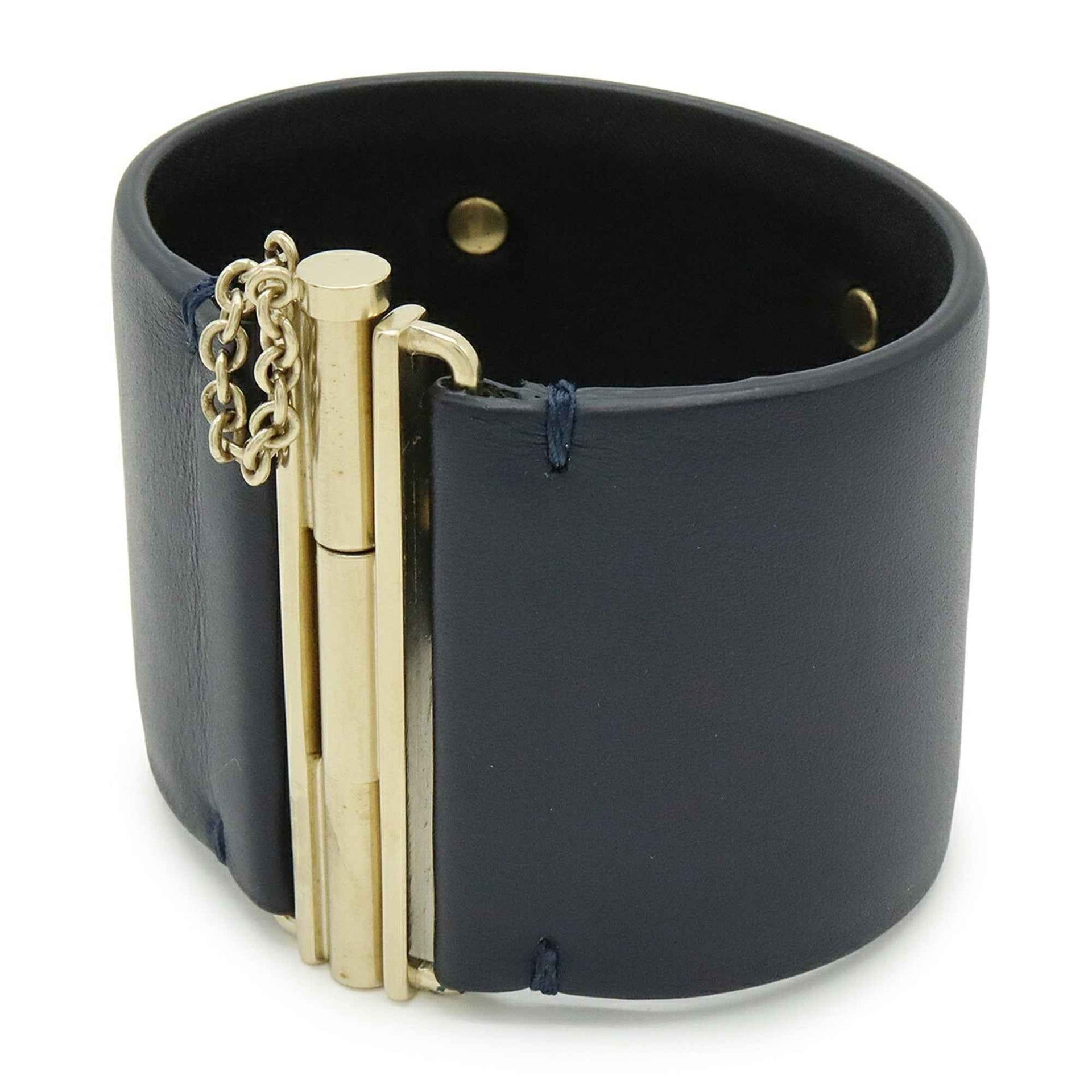 CHANEL Coco Mark Wide Bangle Bracelet in Leather, Dark Navy, Size S, C18 C, Limited Edition