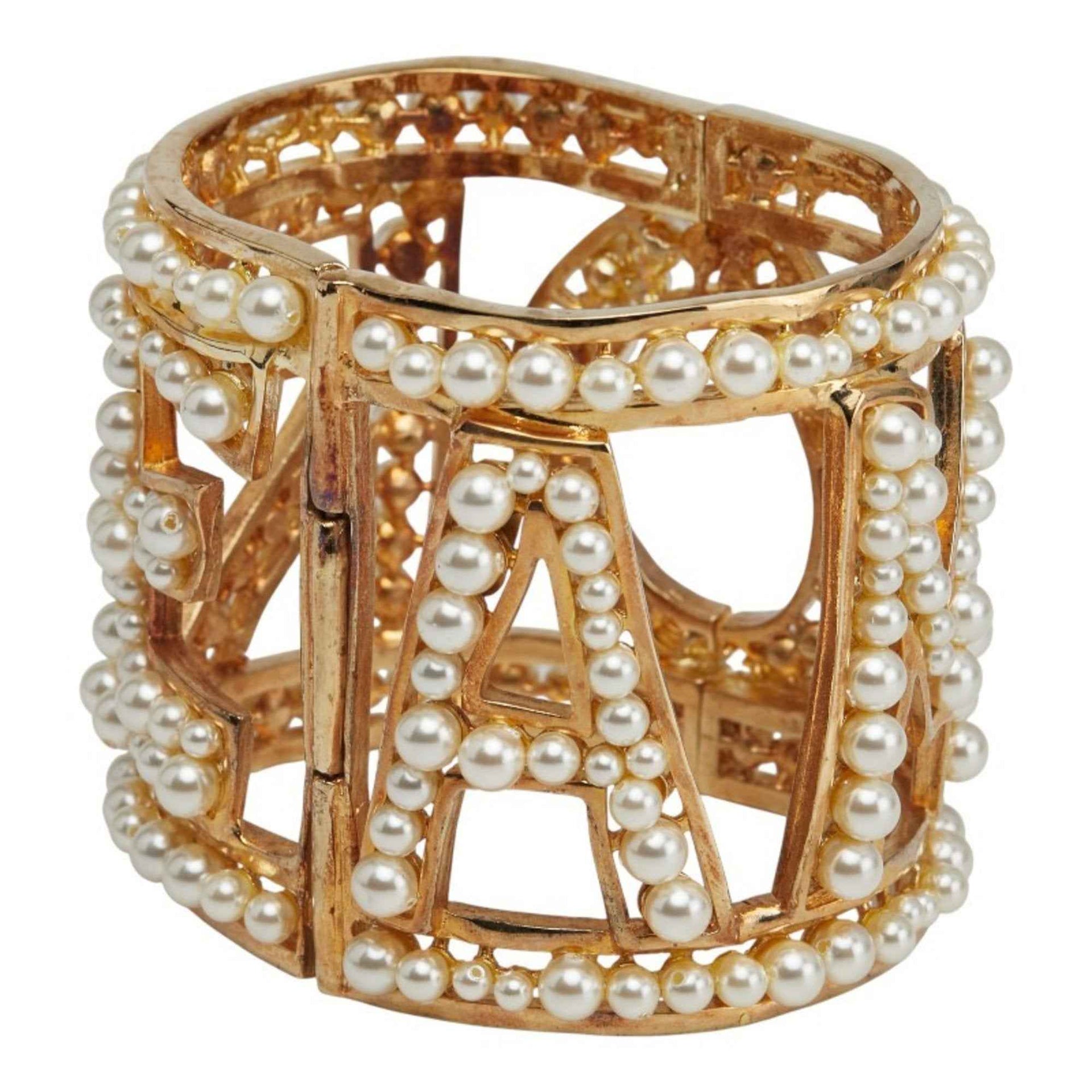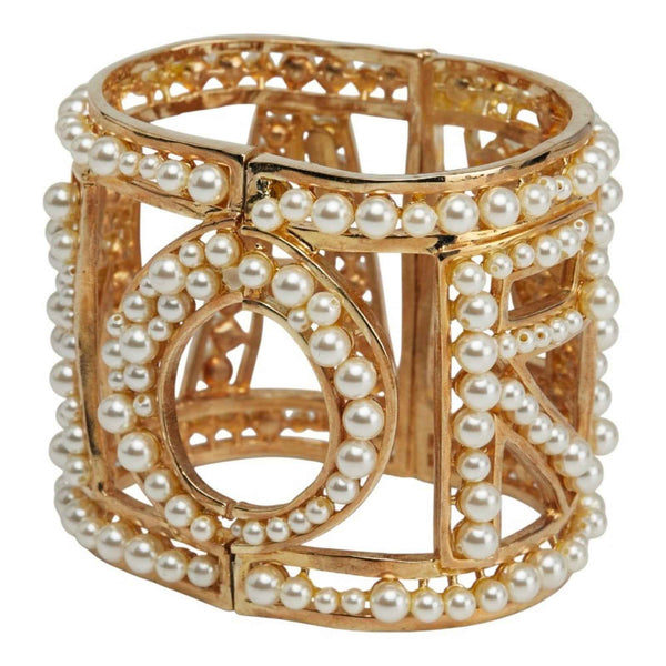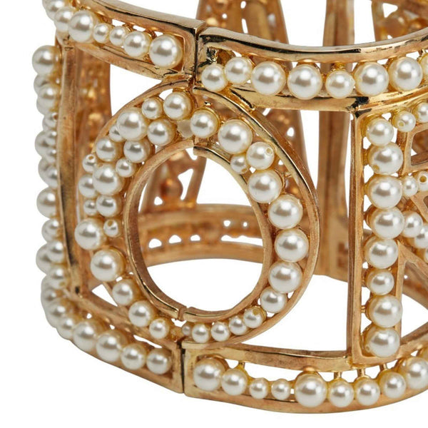 Dolce & Gabbana AMORE Bangle, Gold Plated with Faux Pearls, Women\'s