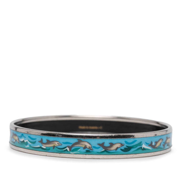 Hermes Enamel PM Cloisonne Bangle in Silver and Multicolored Metal for Women