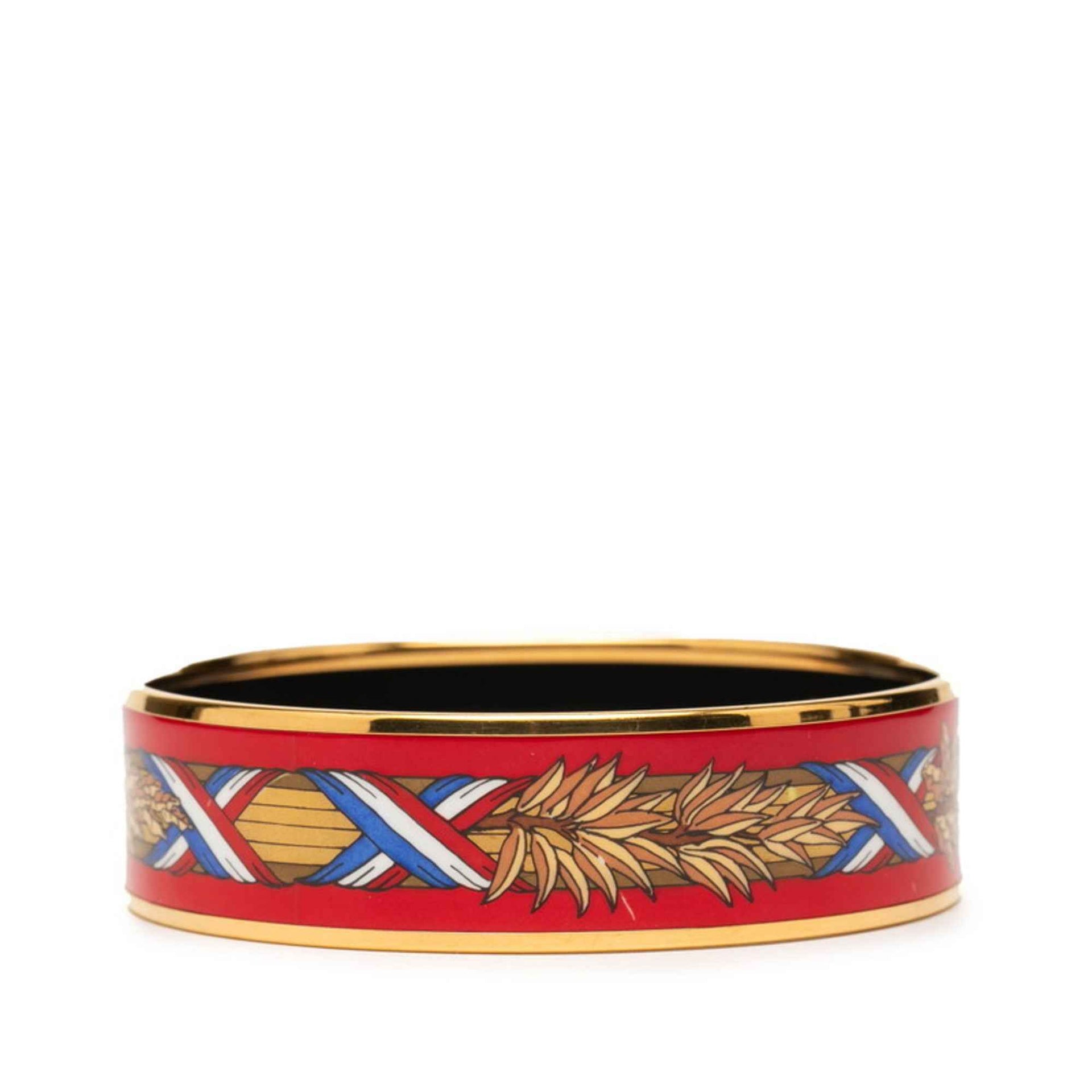 Hermes GM Enamel Cloisonné Bracelet in Gold, Red, and Multicolor Plated for Women
