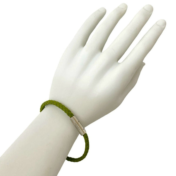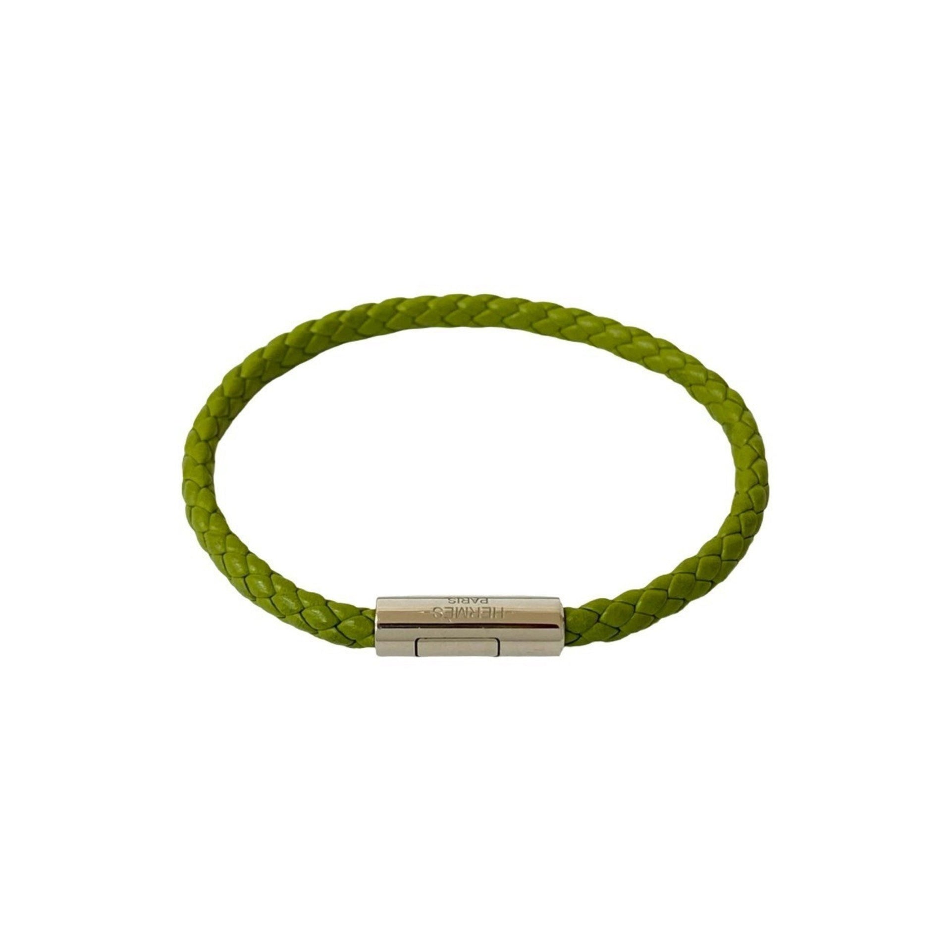 HERMES Goliath Braided Leather Bracelet/Bangle in Light Green and Silver (99739)