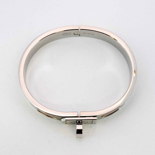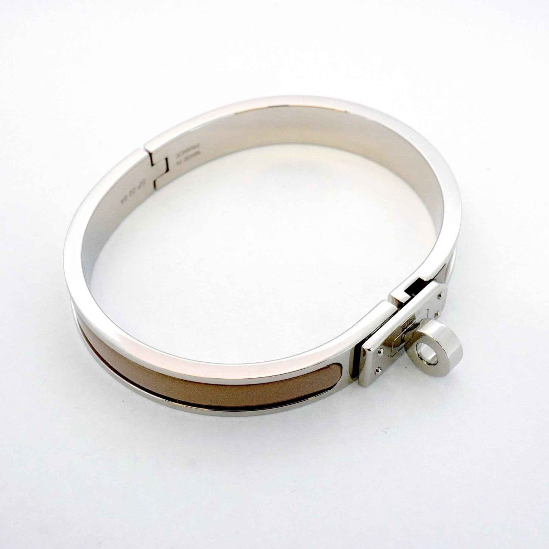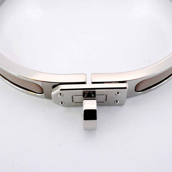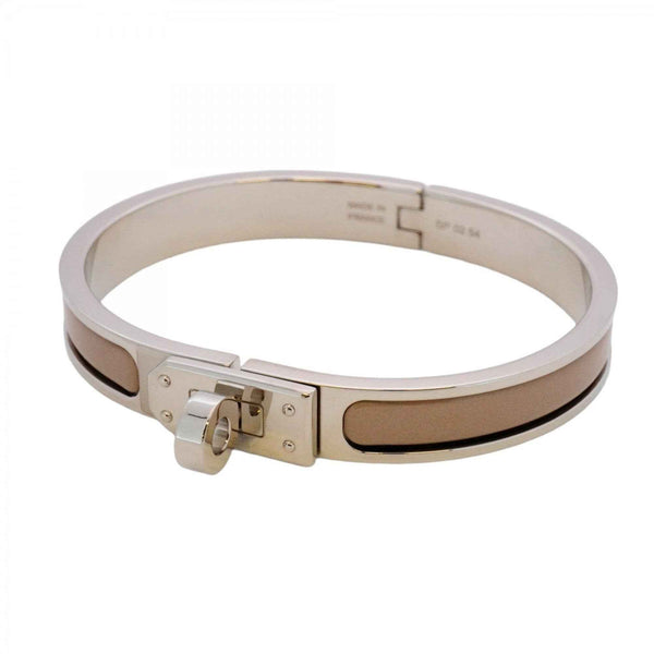Hermes Mini Click Kelly Bangle, Metal, Silver, Beige, Women\'s