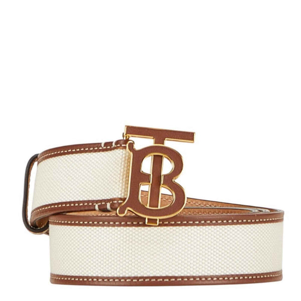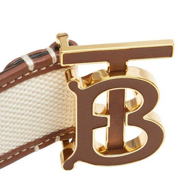 Burberry TB Logo Belt, Size L, White/Brown Canvas/Leather, Women\'s, BURBERRY