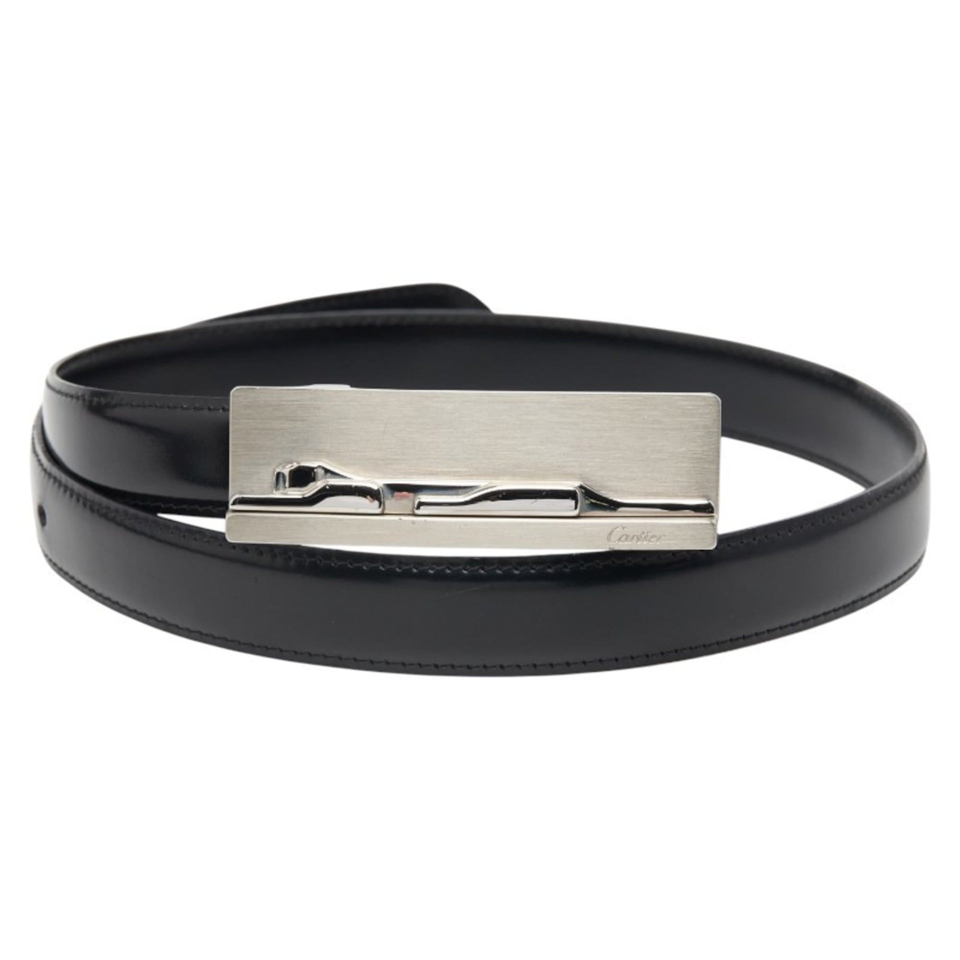 Cartier Panthere Belt in Black and Silver Leather Metal for Men