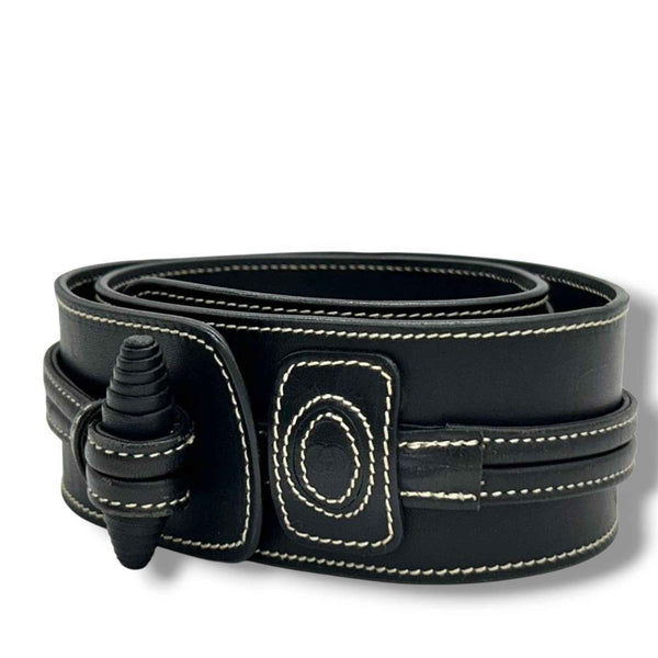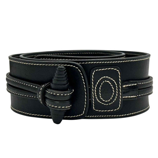 Gucci PX-3 Leather Belt, Black, Stitched, Crest Logo, Genuine Leather, Men\'s, 037-21-0028