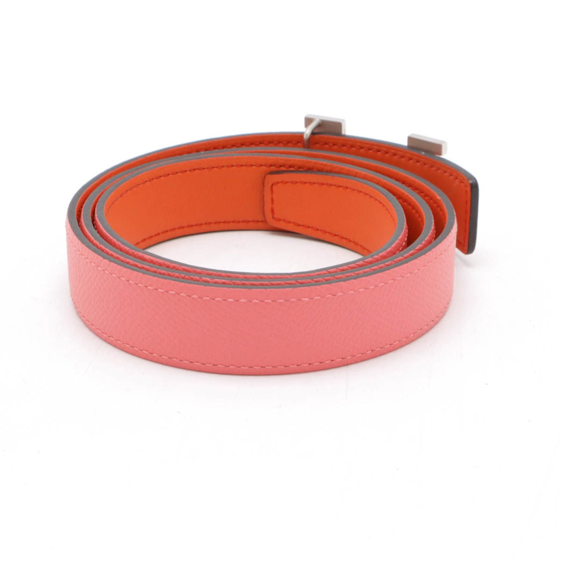 HERMES Mini Constance H Belt Reversible Leather Rose Azalee Pink Orange #80 A Stamp