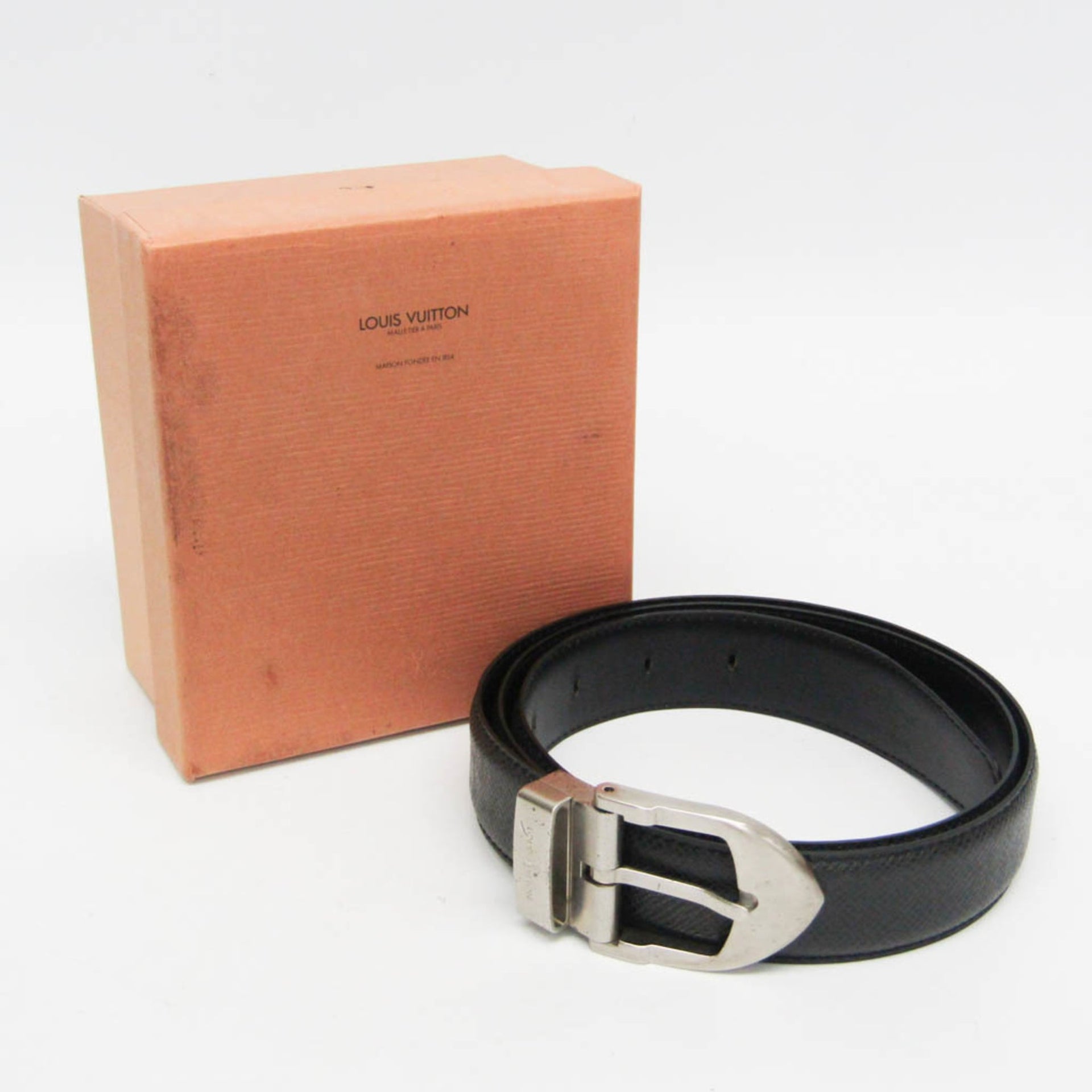 Louis Vuitton Taiga Santur Classic M6843Q Men,Women Leather Standard Belt Black