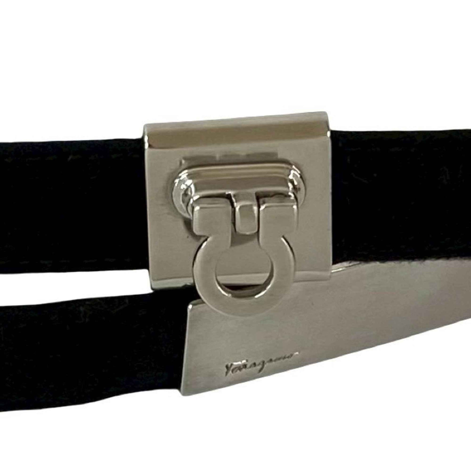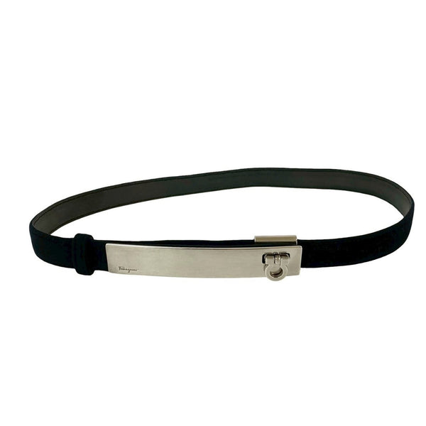 Salvatore Ferragamo Gancini velour and leather belt with metal hardware, women\'s, black, 134-2