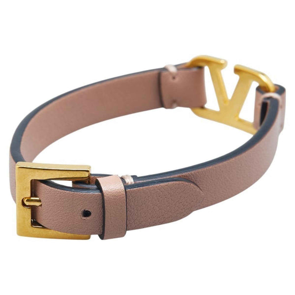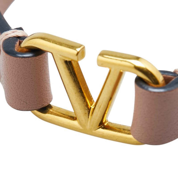 Valentino Garavani logo belt bracelet in beige and pink leather for women.