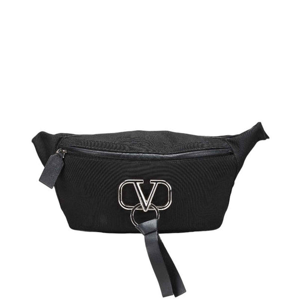 Valentino V Logo Body Bag/Belt Bag in Black Canvas and Leather for Women.